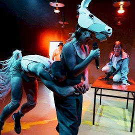 Esityksessä on vilkkuvia valoja, kovia ääniä, teatterisavua ja alastomuutta.